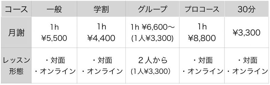 ※ オンラインレッスンの場合は接続確認の時間も含まれます。